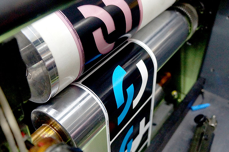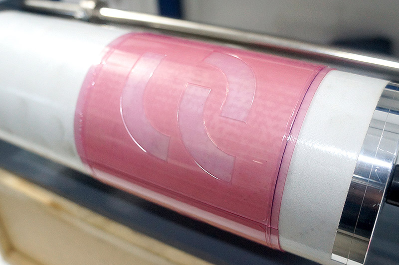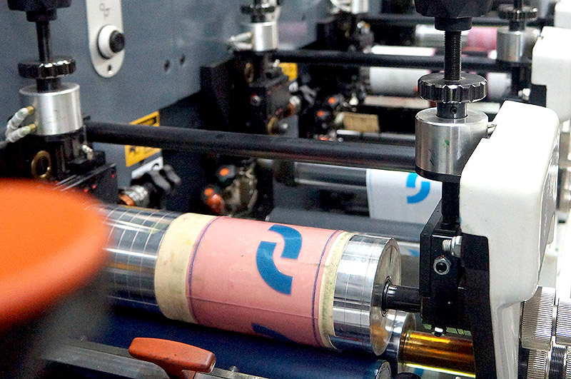 Posteriormente, os clichês são colocados nos cilindros da impressora e passarão por um suporte com a respectiva tinta antes de entrar em contato com a matéria-prima escolhida para a impressão do rótulo adesivo, que pode ser papel couchê, papel térmico, BOPP e outros.